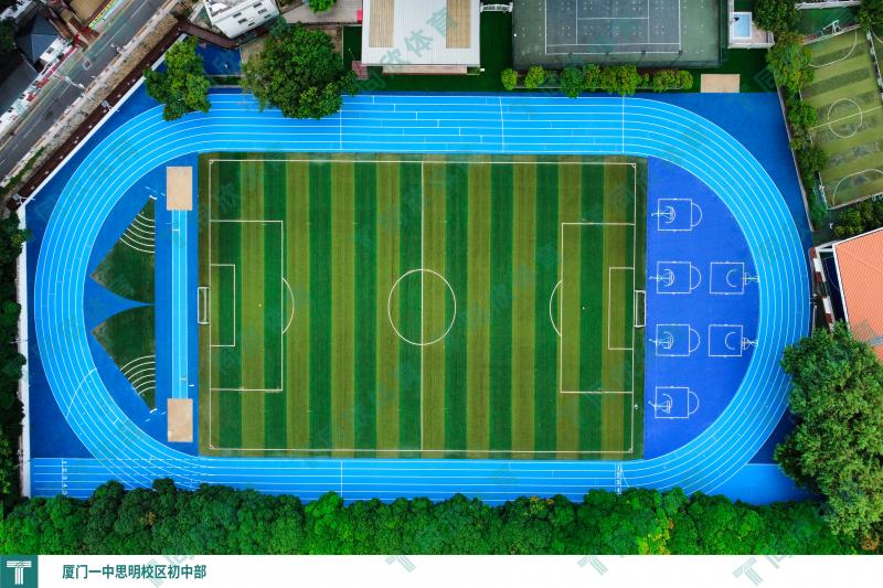 為響應(yīng)國家教育方針,更好地深化體教融合,該校的初中部體育場選用同欣體育預(yù)制型橡膠跑道。藍色的同欣跑道就像是無垠的大海和天空一樣,不僅看著賞心悅目,而且具有很好的緩震緩沖、抗釘刺、耐候耐磨、防滑等穩(wěn)定性能。