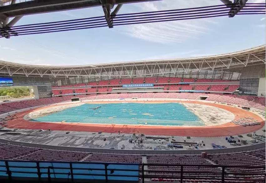 (正鋪設全新同欣跑道的鄭州奧體中心)