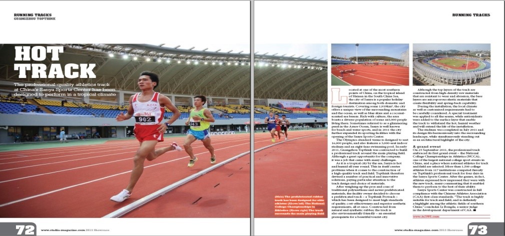 《STADIA》雜志全球最佳場館展示刊中,三亞體育中心跑道的文章